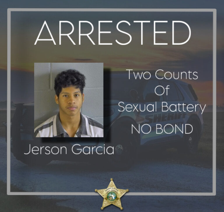 Detective Ryan Sullivan and Shelby Kilian assumed the investigation and conducted interviews, assisted by the Levy County Sheriff’s Office Victim Advocates. The suspect, Jerson Garcia (5/30/2007) was interviewed and subsequently arrested. Two counts of Sexual Battery were filed and Garcia is being held on NO BOND in the Levy County Detention Center.